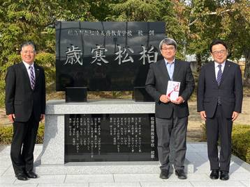 【写真:左から、当社社長 永田嗣昭、松陵義務教育学校校長 小林将路様、 東邦銀行常務 上榁 大様】