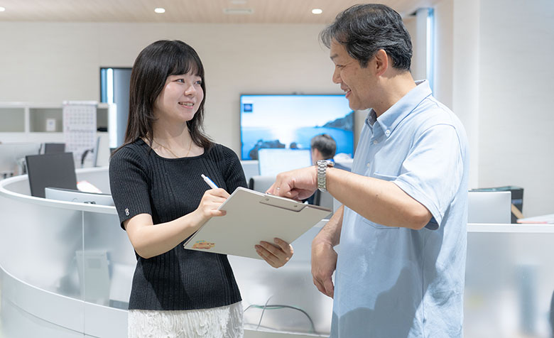 最初から事務職を希望していましたが、入社してみたら仕事が思っていた以上に幅広いので驚きました。ひとつの業務に慣れて仕事の効率が上がったら次の業務にも挑戦するというように、1歩ずつ仕事の幅を広げているところです。